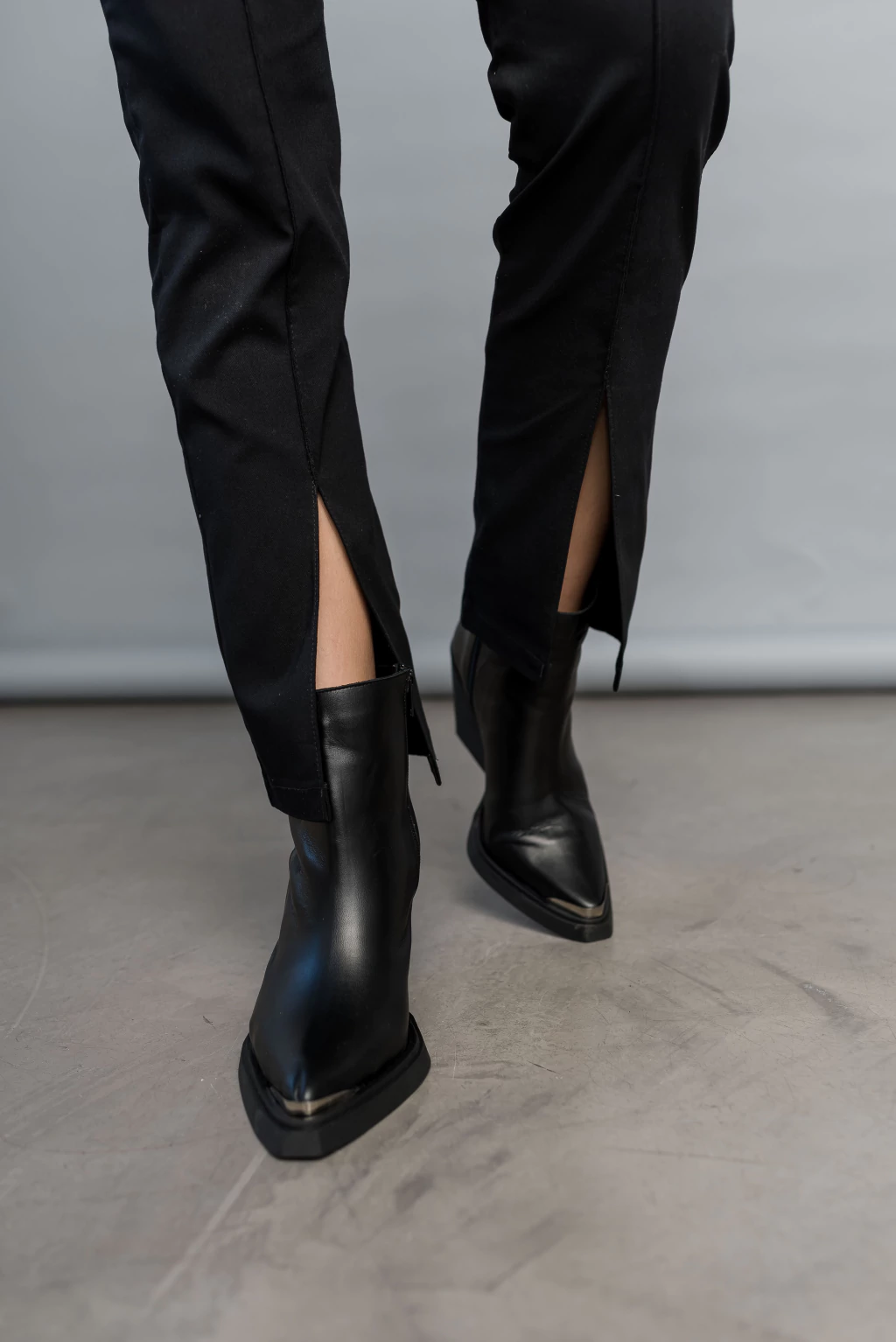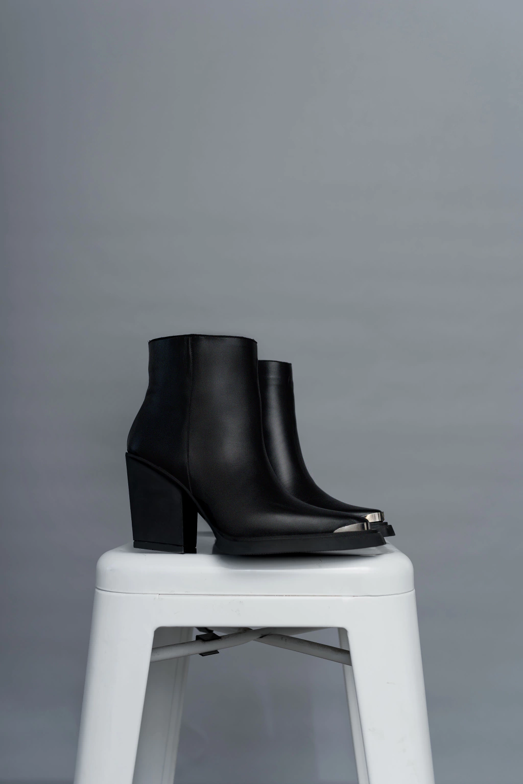 Botineta de punta fina, capellada de cuero liso, suela super liviana de goma TR